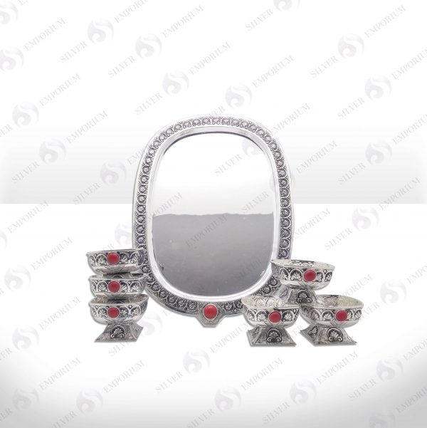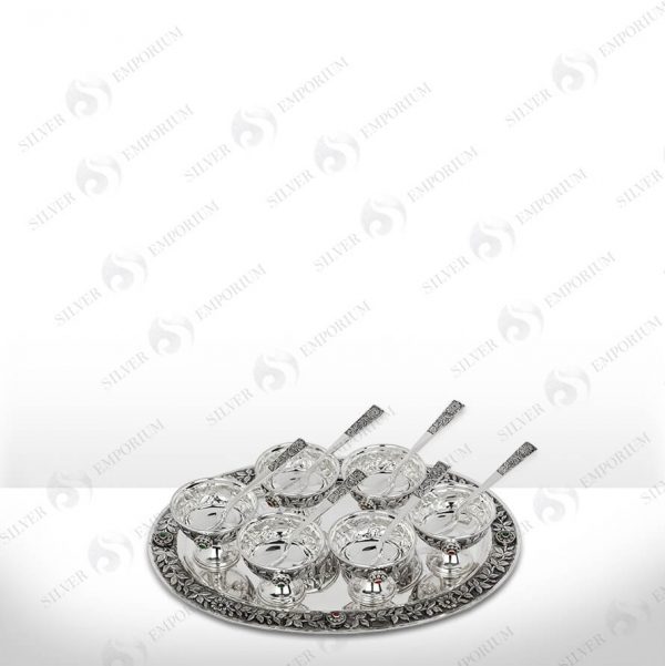 Hand embossed with cut stone inspired by bael patra (with spoon). Serve indulgent desserts in this equally indulgent dessert bowls