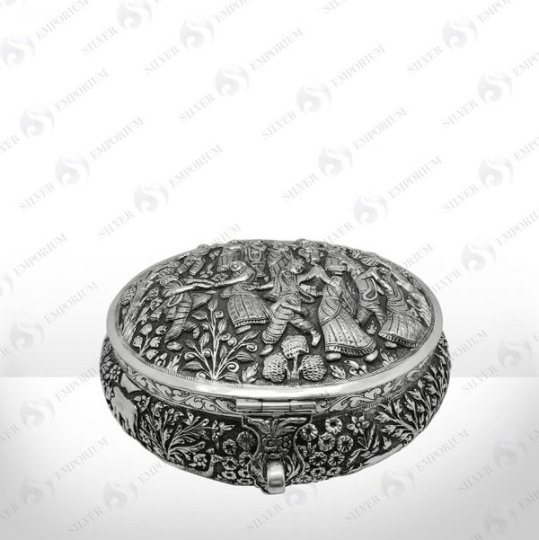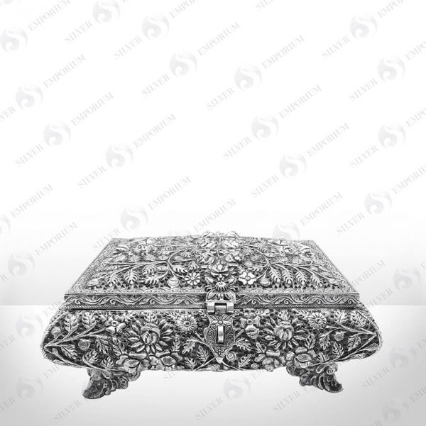Full embossed oxidised box inspired by floral motif .