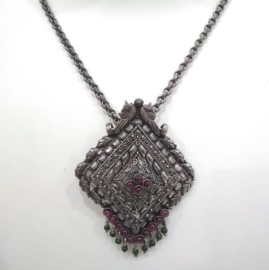 The silver pendant is a reflection of Royalty, each piece is attached with intricacy, inspired by a floral motif. The handcraft and beautiful design in it are truly charming.