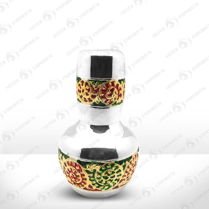 Cut stone embedded flower shaped tray with 6 set of barni