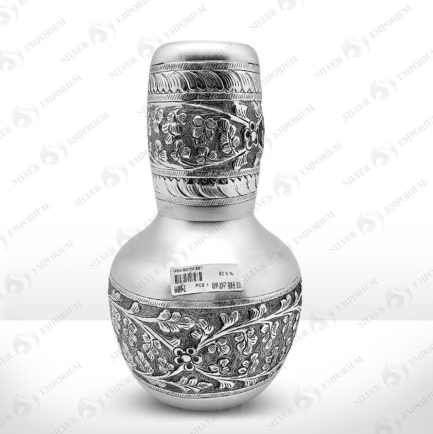 Hand embossed room set inspired by floral motif in oxidised finish.