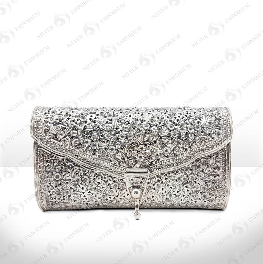 Horal embossed clutch with diamond stone with golden finish base polish.